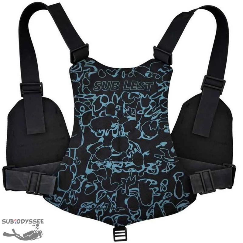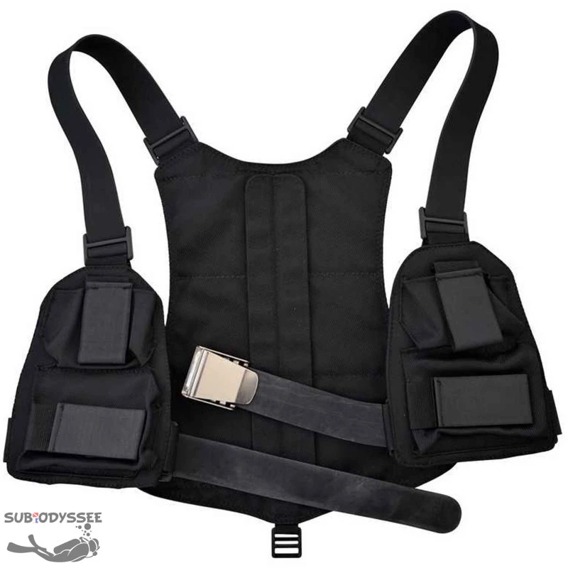 Gilet baudrier Sublest, 3 pièces pourvu de 10 poches vides à lester. Convient pour une combinaison de plongée étanche ou pour la chasse sous-marine.