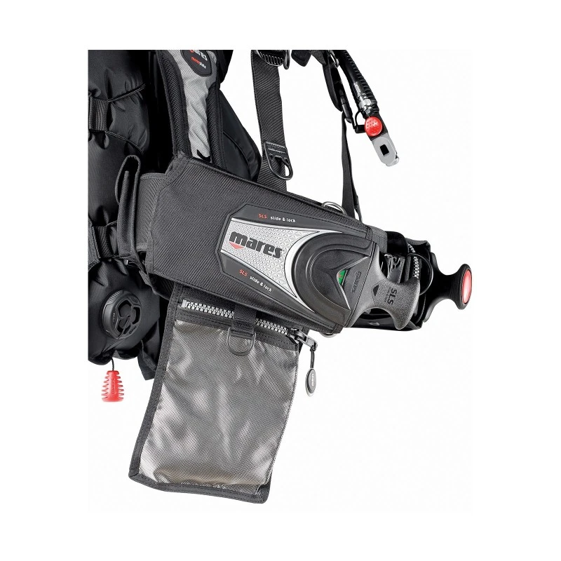 Le BOLT est doté des poches «Trim Weight» (poids jusqu’à 2+2kg) sur les deux côtés du dosseret, ainsi que la poche dépliante sous le support de lest droit, fermée par une fermeture-éclair solide : témoignage de la fiabilité des nouvelles solutions que Mares propose sur ses nouveaux produits.