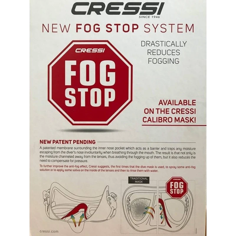 Grâce à la disposition des verres en oblique, le Calibro est le seul masque Cressi combinant un volume intérieur minimal & un champ de vision particulièrement étendu.