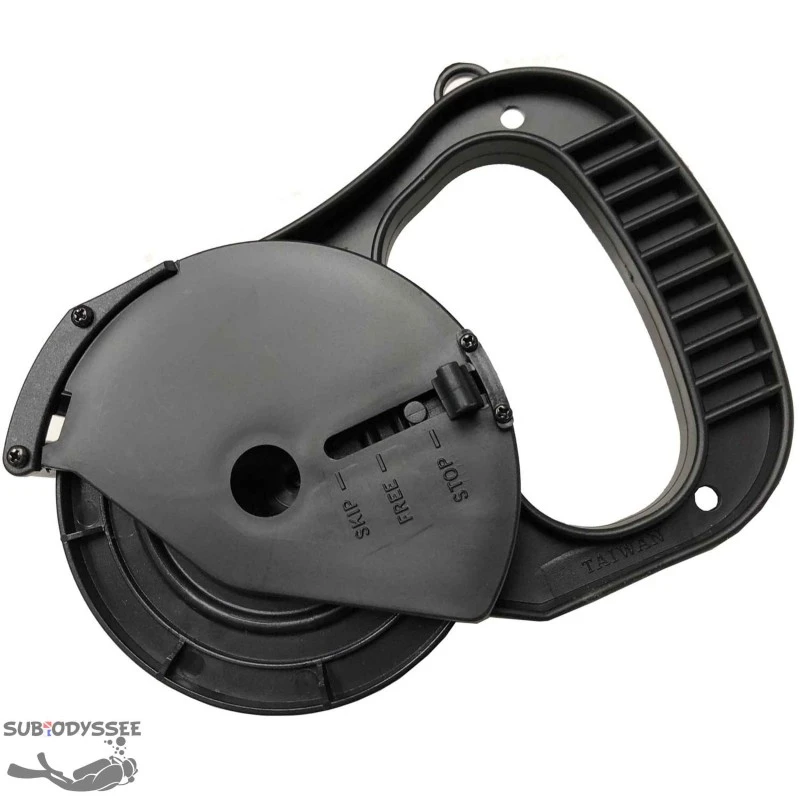 Dévidoir en ABS équipé de 3 positions d’utilisation sur la bobine (libre, cranté ou bloqueur tous les 45°).