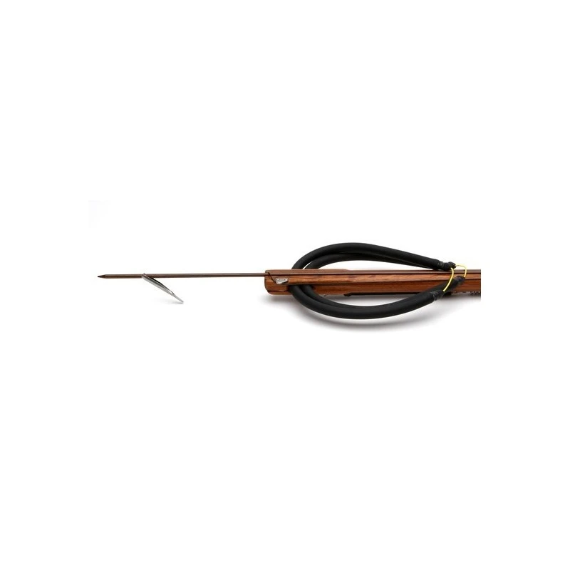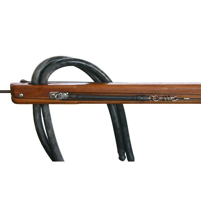 Equipé de série de deux sandows Riffe ligaturés avec obus en dyneema de Ø16 mm, la portée de tir est estimée à plus de 5 mètres pour une version type 90 cm.