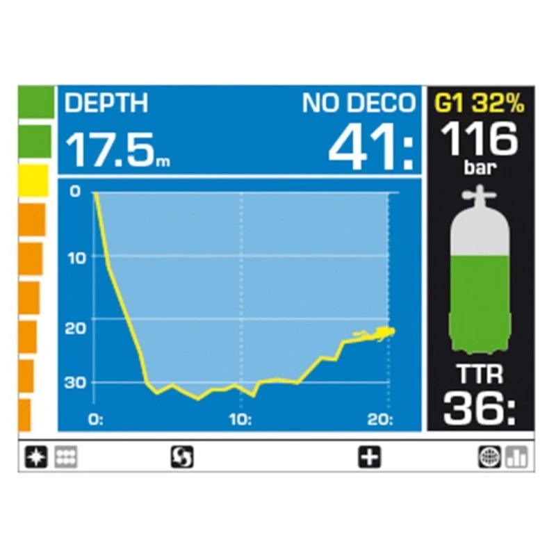 Mode Profondimètre, Air, Nitrox Multigaz, Trimix pour s’adaptater à tout type de plongée.