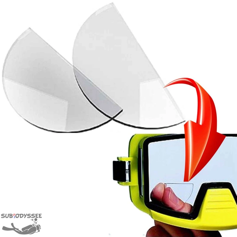 Ces demi-lentilles adhésives vous permettent de voir de près sur vos équipements optiques qui n’en possèdent pas, par exemple votre masque de plongée (mais aussi Lunettes de soleil, lunettes de sport, lunettes de protection etc).