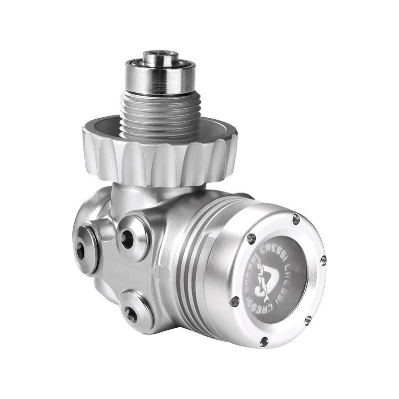 Le premier étage T10 SC CROMO se distingue de la gamme des détendeurs Cressi à membrane compensée par un mécanisme disposé sur un axe perpendiculaire à l’entrée d’air, créant une forme « T ». Les avantages de cette conception particulière comprennent un meilleur agencement des flexibles & moins d’espace occupé (en particulier dans cette version SC pour l`eau froide).