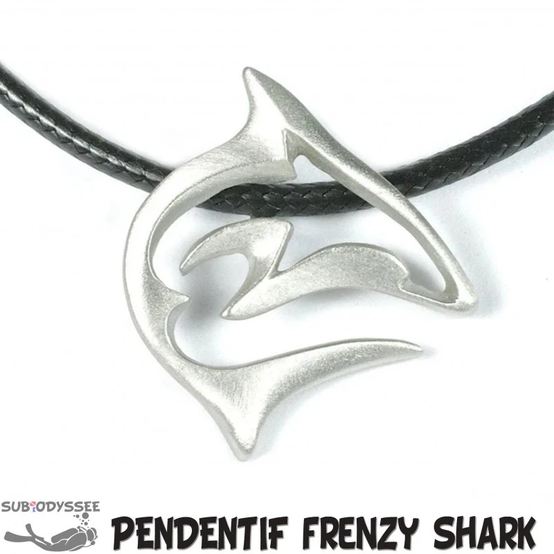 Collier avec motif FRENZY REEF SHARK en étain sans plomb, muni d’une couche d’acrylique protectrice pour l’aider maintenir son éclat.