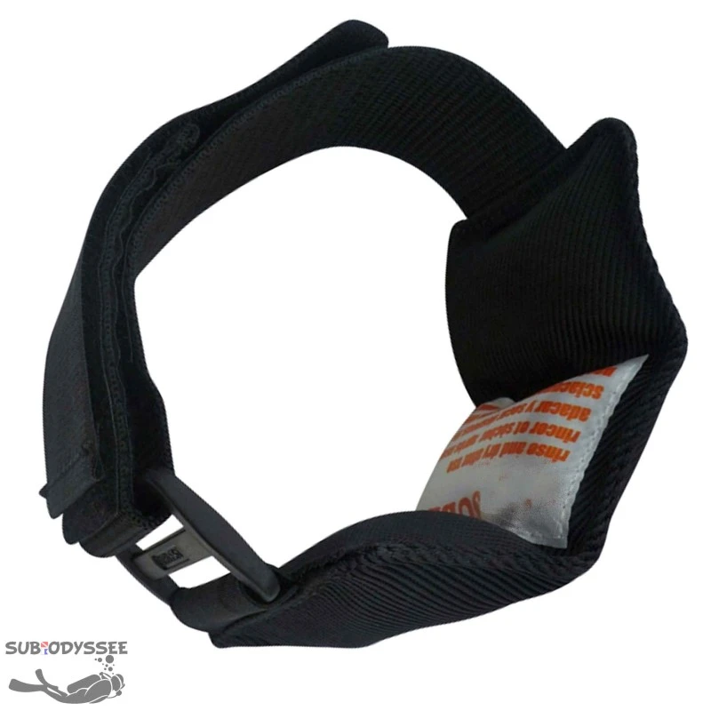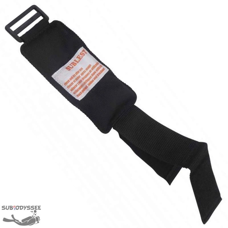 Plomb de cheville 750g souple à grenaille de Sublest, composé d’une pochette remplie de grenaille inox avec bandes velcro & boucle sur sangle élastique (réglage pratique & précis).