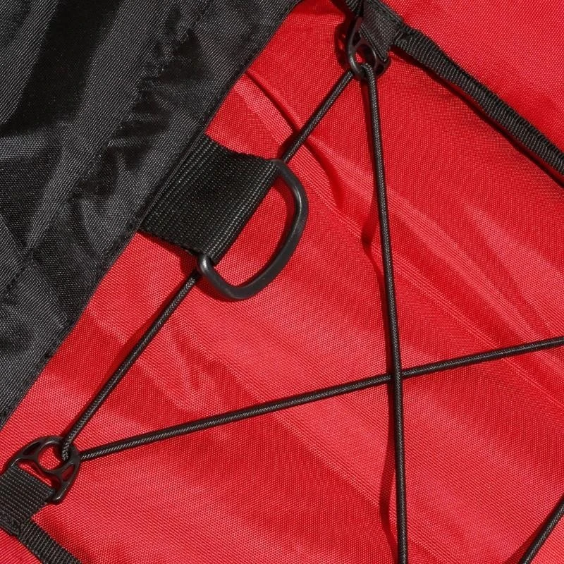– Des cordons Ă©lastiques sur le coussin central sĂ©curisent le matĂ©riel.
