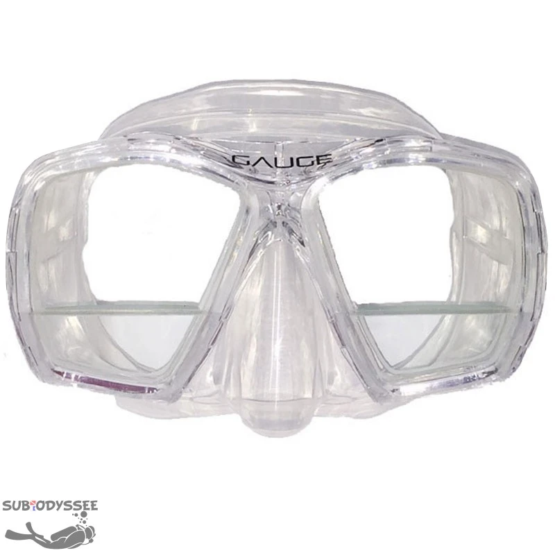 Masque Polaris QUADRA avec verres correcteurs positifs incorporés en silicone clair.
