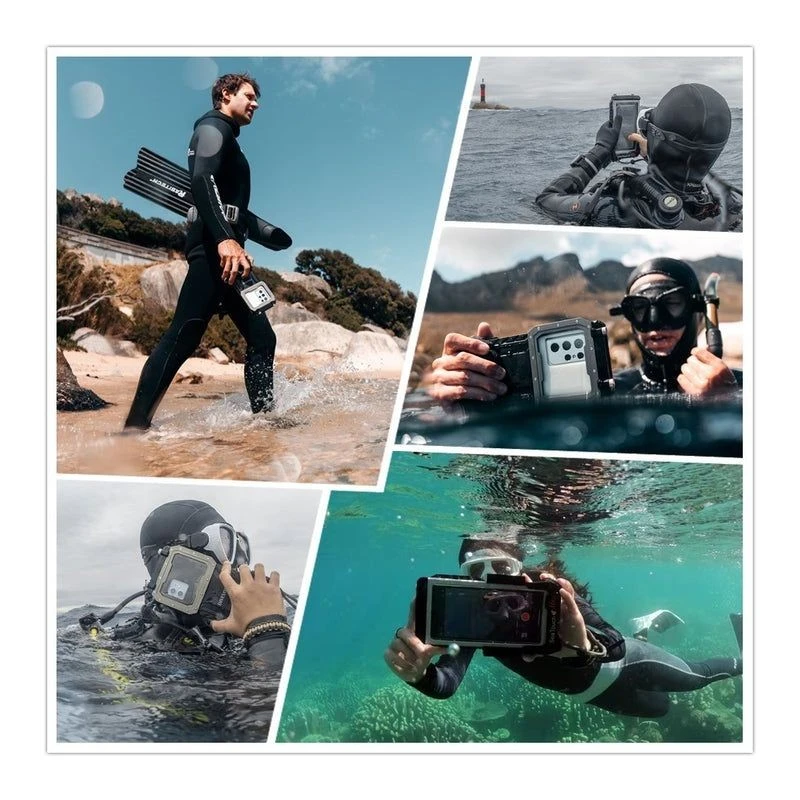 Ce caisson étanche vous permet de faire des photos & des vidéos sous-l’eau avec votre smartphone, tout en visualisant & en pouvant utiliser l’écran tactile de votre téléphone.