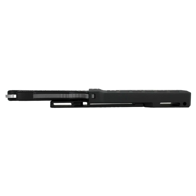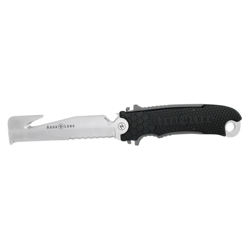 – Lame Sheeps Foot : Mécanisme Squeeze-Lock, pointe et angles arrondis, coupe-fil, décapsuleur, œillet pour dragonne, manche articulé, options de fixation à un gilet de stabilisation, à la jambe ou à une ceinture