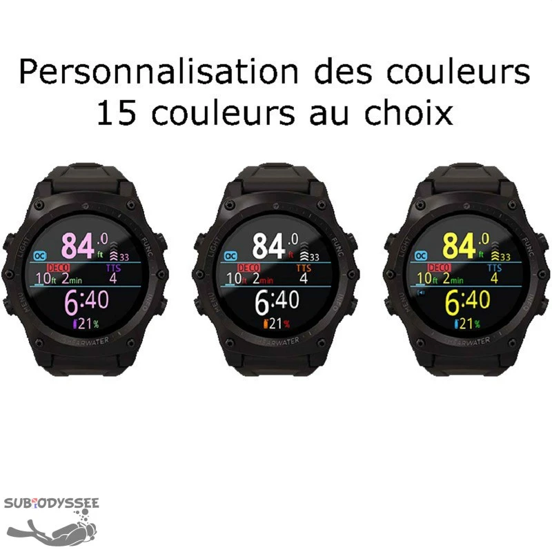 Modes : Ordinateur Air, Nitrox, Trimix Recycleur circuit ouvert, Recycleur circuit fermé, Profondimètre (Gauge avec enregistrement), Apnée, montre.