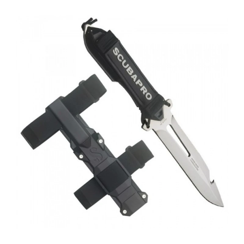 Le TK15 est doté d’un manche robuste taillé pour une excellente prise en main. Son fourreau est conçu en polyamide renforcé de fibre. Le couteau y est bloqué par deux dents qui correspondent aux crans de son manche. Le fourreau est pourvu de deux sangles en nylon robuste pour une fixation aisée, ainsi que d’un protège-manche portant la marque SCUBAPRO & muni d’un cordon élastique qui peut s’attacher à votre main lors de plongées plus intenses.